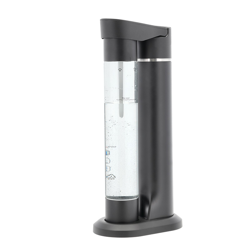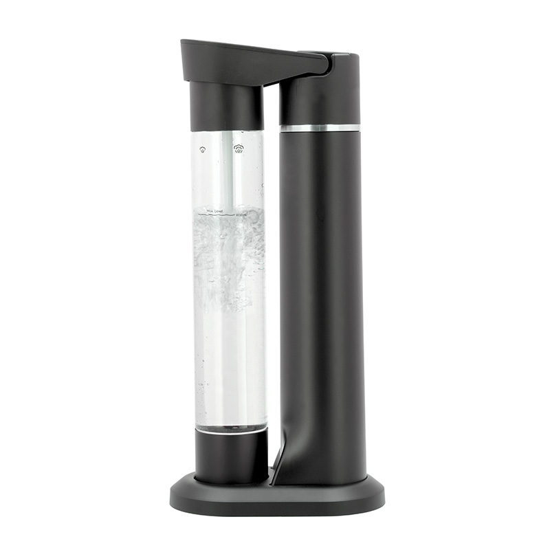 Maskinen er kompatibel med standard kulsyrepatroner og har en sikkerhedsventil, der sørger for, at dine drikke ikke bruser over. Der medfølger desuden en 800 ml genbrugelig PBA-fri flaske, som let kan påsættes.