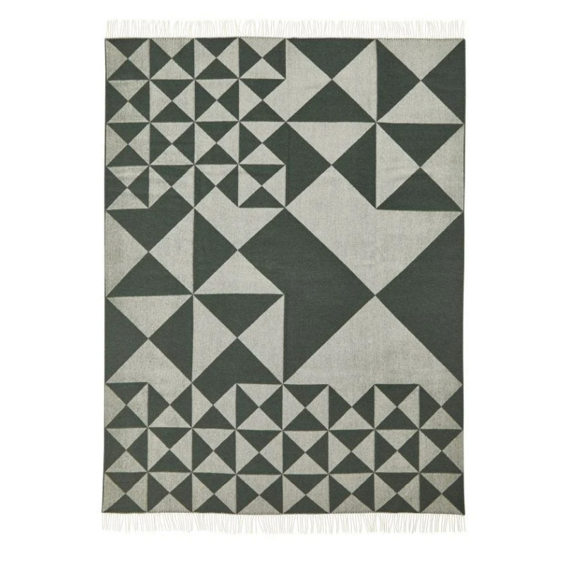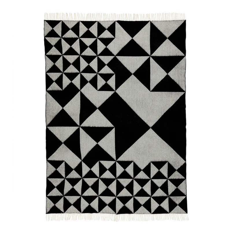 Mirror Throw plaiden fra Verpan har fine frynser i enderne. Plaiden er designet af Verner Panton i 1969, designet til plaiderne er udsprunget af Mirror Sculptures til væggen. Uld har en fantastisk evne til at regulere kroppens temperatur og er derfor er plaiden perfekt til at sidde og hygge med i sofaen eller udenfor en lidt køligere aften.